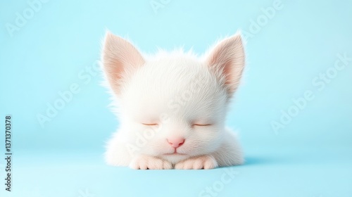 © PAPAHJAHATZ, Fototapeta premium Adorable white kitten resting