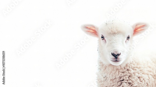 Fototapeta premium Adorable White Lamb Isolated on a Clean White Background, Perfect for Gentle...