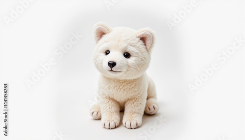 © Rungrudee, Fototapeta premium Adorable white puppy posing on a bright backdrop, charming studio portrait