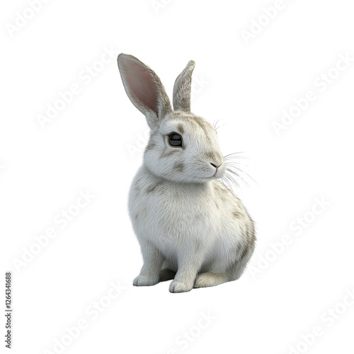 © Chung, Obraz premium Adorable White Rabbit Sitting, 3D Rendered Pet Image