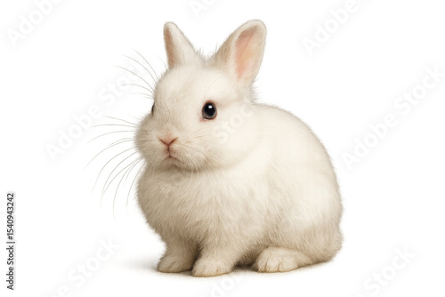 © whitestorm, Obraz premium Adorable white rabbit sitting isolated on transparent background, cut out animal