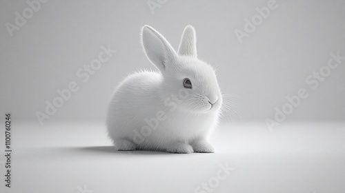 © Ashalina, Obraz premium Adorable white rabbit sitting on white background.