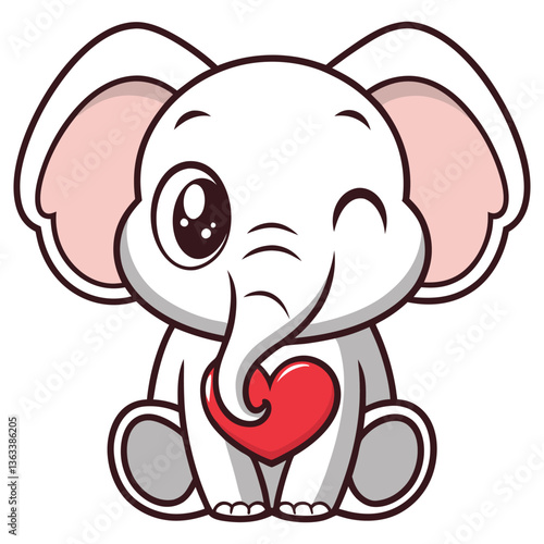 Fototapeta premium Adorable Winking White Elephant with Heart on Transparent Background