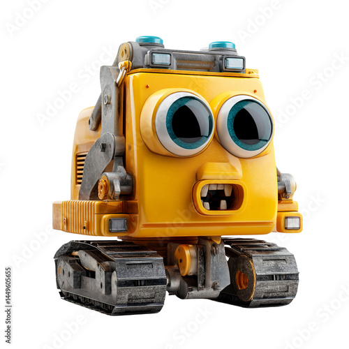 Fototapeta premium Adorable Yellow Construction Robot with Big Eyes - 3D Render