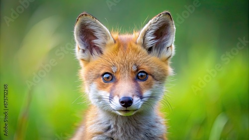 © Sujid, Fototapeta premium Adorable young fox cub with fluffy fur and curious eyes, fox, cute, cub, wildlife, young, animal, fluffy, fur, adorable, small