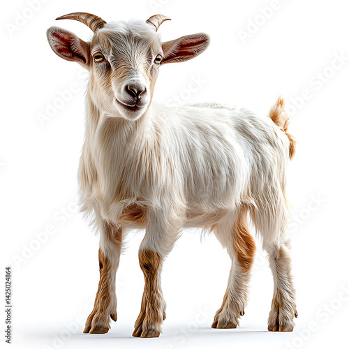 © BgStudio98, Obraz premium Adorable young goat portrait standing isolated on white background beautiful light