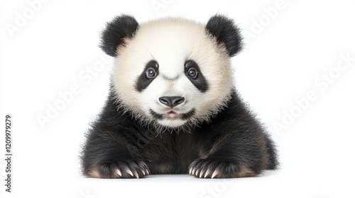 Naklejka premium Adorable Young Panda with Distinctive Black and White Features