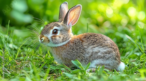 Fototapeta premium Adorable Young Rabbit in Lush Green Grass