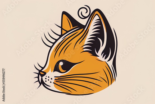 © The 2R Artificiality, Fototapeta premium adorably animated cat logo. Generative AI