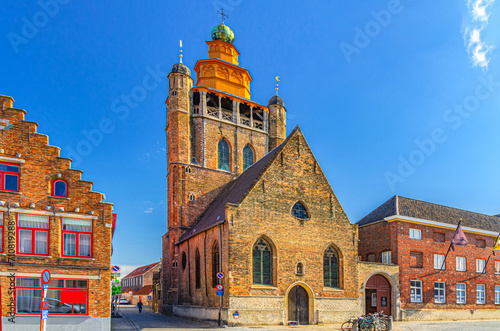 © Aliaksandr, Fototapeta premium Adornesdomein Adornes estate Adornes Domain Jeruzalemkapel Jerusalem Chapel Kerk building in Brugge city historical centre, Bruges old town Sint-Anna quarter, West Flanders province, Belgium