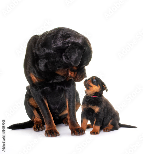 © cynoclub, Obraz premium adult and puppy rottweiler