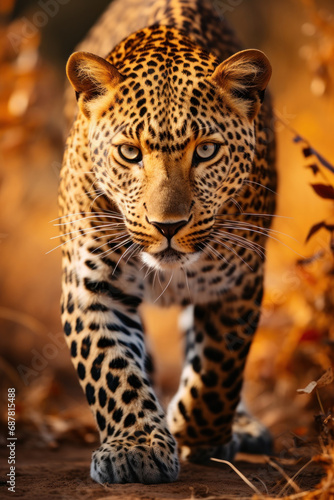 © Uliana, Obraz premium Adult angry leopard in african savannah. Created with Generative AI