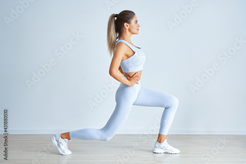 © Kalim, Fototapeta premium Adult beautiful woman working out over light background