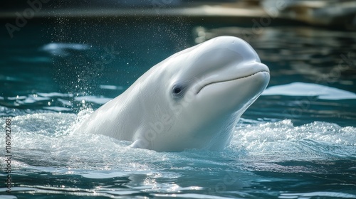 Naklejka premium Adult Beluga Whale, also known as the White Whale, emerges gracefully from...