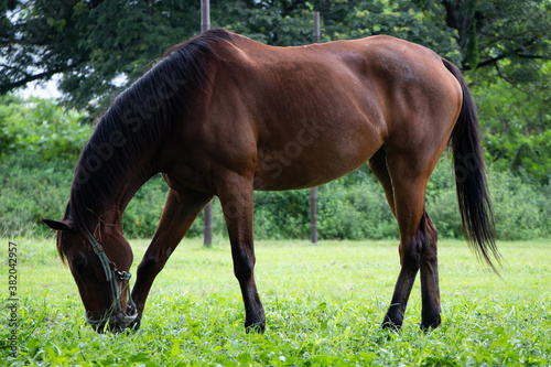 Obraz premium Adult Brown Horse Grazing in Field - Pampanga, Philippines