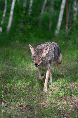© hkuchera, Obraz premium Adult Coyote (Canis latrans) Trots Forward from Forest Edge Summer