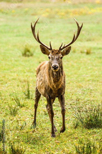 © olgagorovenko, Naklejka premium Adult deer standing in autumn forest