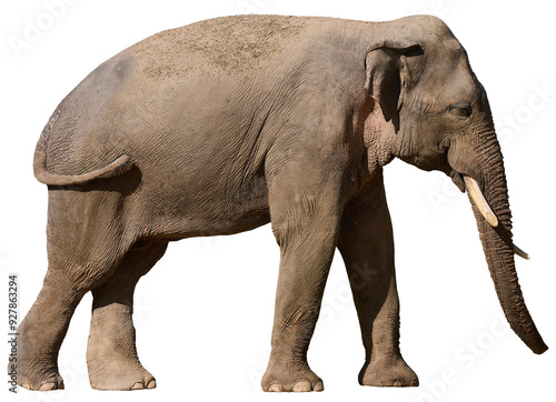 © nndanko, Fototapeta premium Adult elephant with tusks on isolated background, animal walking