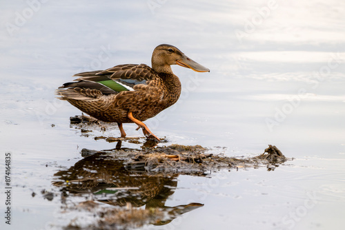 Fototapeta premium Adult female northern shoveler (Spatula clypeata). Copy space image.