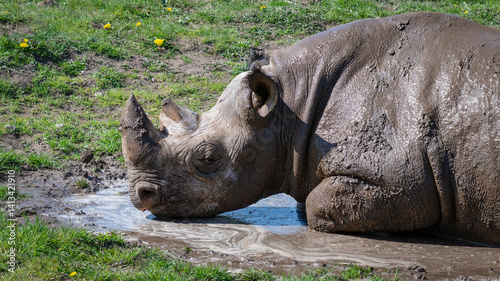 © Ian, Fototapeta premium Adult Male Black Rhinoceros Enjoying a Mud Bath