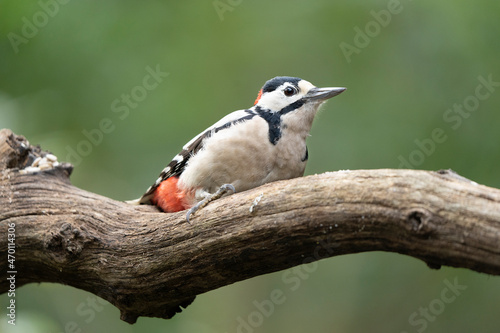 © Leoniek, Obraz premium Adult male of Great spotted woodpecker bird Dendrocopos major