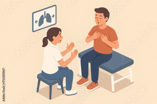 Obraz premium Adult man participating in a breathing exercise session with a medical professional, focusing on respiratory health