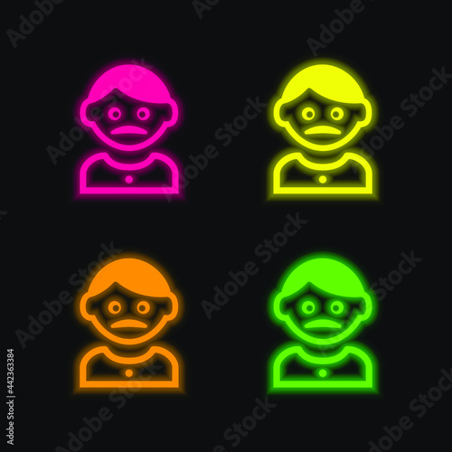 Obraz premium Adult Man With Moustache four color glowing neon vector icon