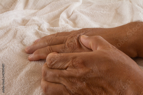 © Horacio Selva, Fototapeta premium Adult man with pain in the hands. Joint pain in young adults.