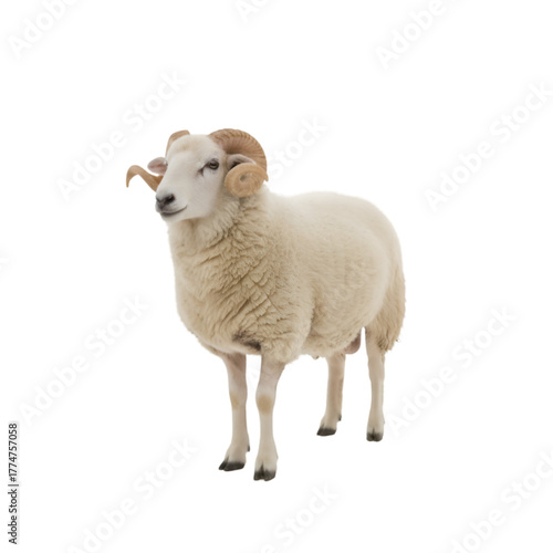 © ibrahimmaryam, Obraz premium Adult Ram with Horns Isolated on White on white background