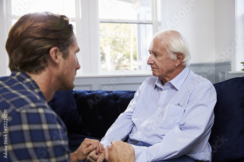 Fototapeta premium Adult Son Talking To Depressed Father At Home