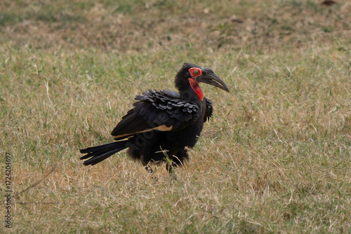 © Riccardo Rolfini, Fototapeta premium Adult southern ground hornbill walking in the lake Manyara wetland