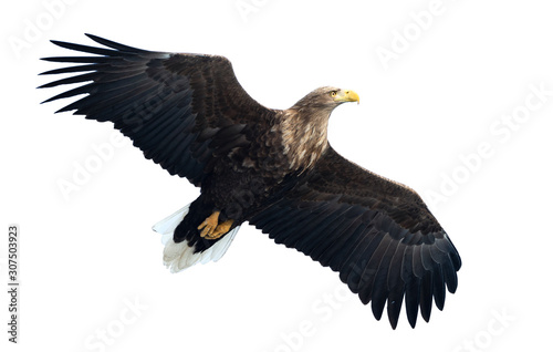 Fototapeta premium Adult White tailed eagle in flight. Isolated on White background. Scientific...