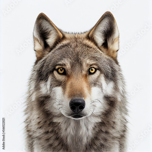 © Victor, Fototapeta premium Adult wolf portrait isolated on a white background. Generative AI.