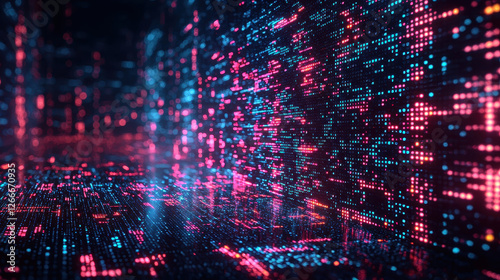 © Leopard, Fototapeta premium Advanced AI-powered system detects digital threats in a futuristic cyber landscape filled with vibrant neural networks and glowing data streams