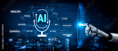 Fototapeta premium Advanced AI Technology Interface with Multilingual Capabilities and Robotic...