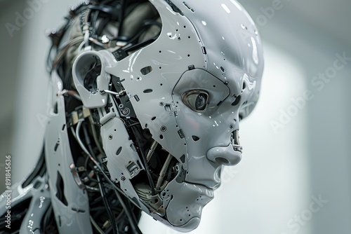 Fototapeta premium Advanced Android Robot Humanoid Head Close-Up