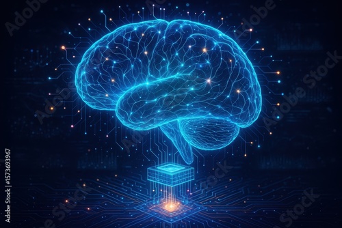 Fototapeta premium Advanced artificial intelligence brain visualization with neural network pathways and quantum computing elements