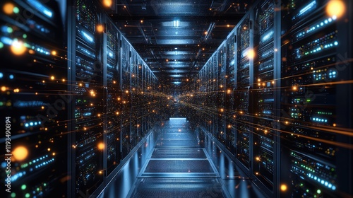 Fototapeta premium Advanced computing hub surrounded by glowing, interconnected circuits in a dark, high-tech environment