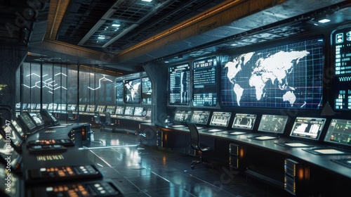 Fototapeta premium Advanced control room monitoring digital data