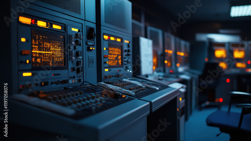 Naklejka premium Advanced control room operations modern facility technology environment industrial setting high-tech concept