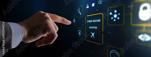 © Funtap, Obraz premium Advanced cyber security systems protecting modern aviation technology and flight navigation systems