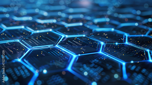 Obraz premium Advanced cybersecurity network with hexagonal designs, epitomizing futuristic...