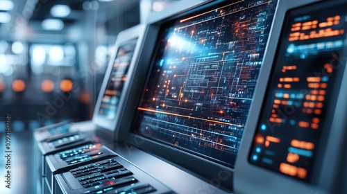 Obraz premium Advanced digital banking terminal showing secure transactions and data...