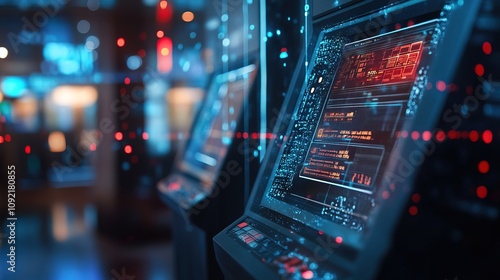 Obraz premium Advanced digital banking terminal showing secure transactions and data...