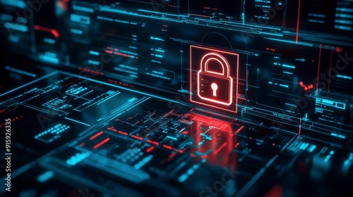 © keks20034, Obraz premium Advanced Digital Lock Displayed on Computer Screen, Representing Cutting-Edge Cybersecurity Measures