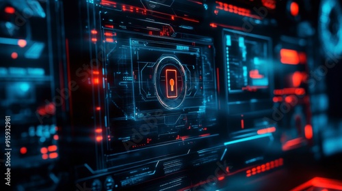 Obraz premium Advanced Digital Lock Displayed on Computer Screen, Representing Cutting-Edge...