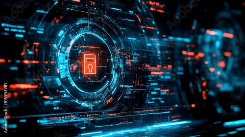 Obraz premium Advanced Digital Lock Displayed on Computer Screen, Representing Cutting-Edge...