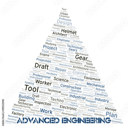 © sharafmaksumov, Naklejka premium Advanced Engineering typography word cloud create with the text only