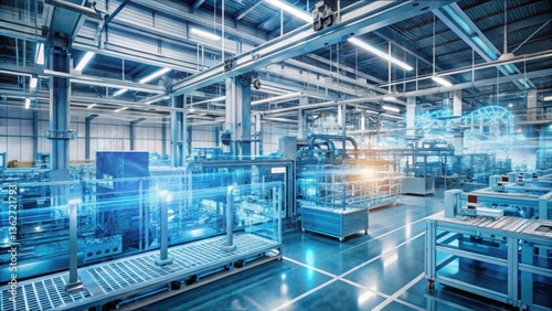 Naklejka premium Advanced Factory Equipment with Data Overlays in High-Tech Setting