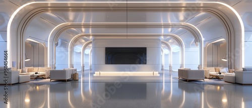 Obraz premium Advanced Futuristic Airport: Environment with High-Tech Terminals, Automated Systems, and Modern Aircraft Design